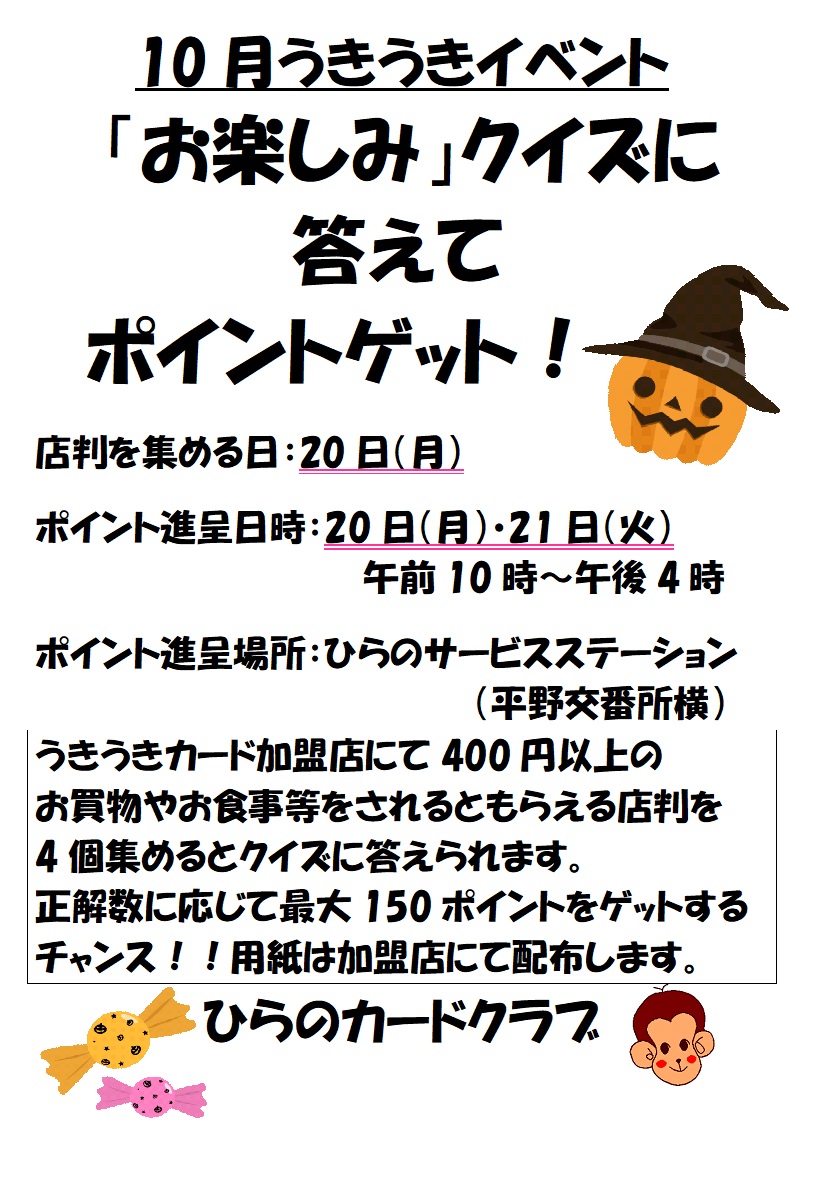 「10月のお楽しみクイズに答えてポイントゲット!」