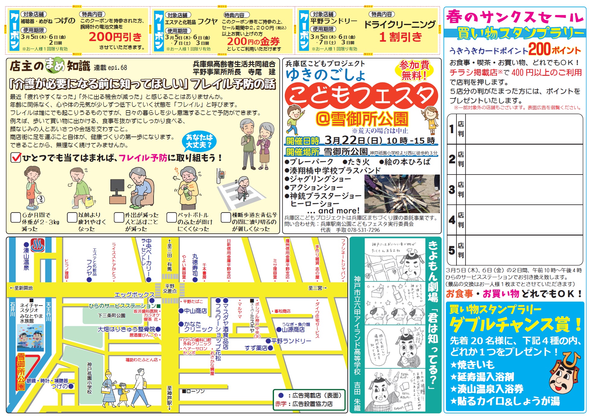 買い物スタンプラリーではチラシ掲載店にて400円以上のご利用で店判を1つ押します。5店舗分の店判を集めるとうきうきポイント200ポイントをプレゼントします。
