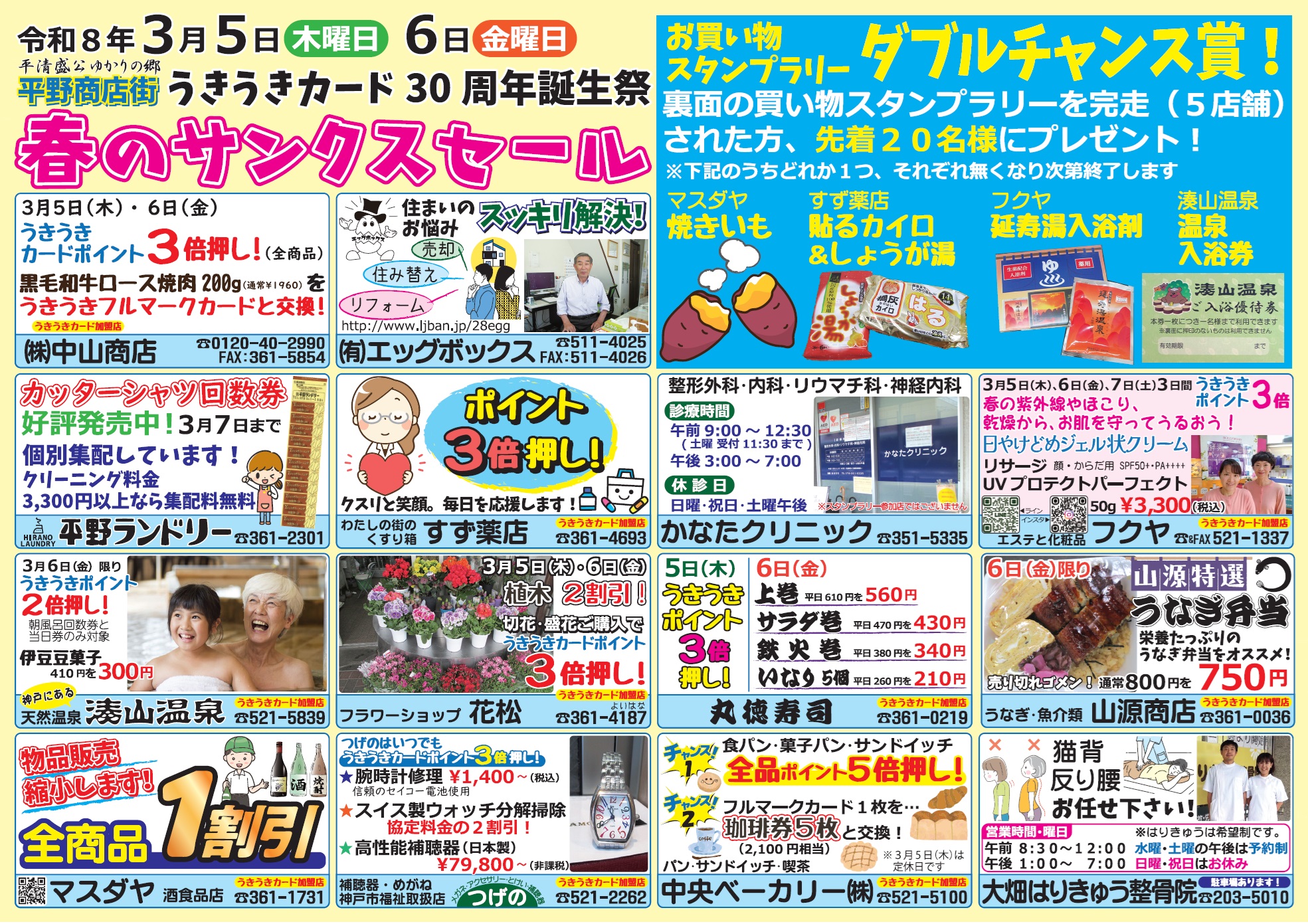 チラシ掲載店ではうきうきポイント3倍押しや奉仕品、お得なフルマークカードの交換品などをご用意して皆様のお越しをお待ちしております。